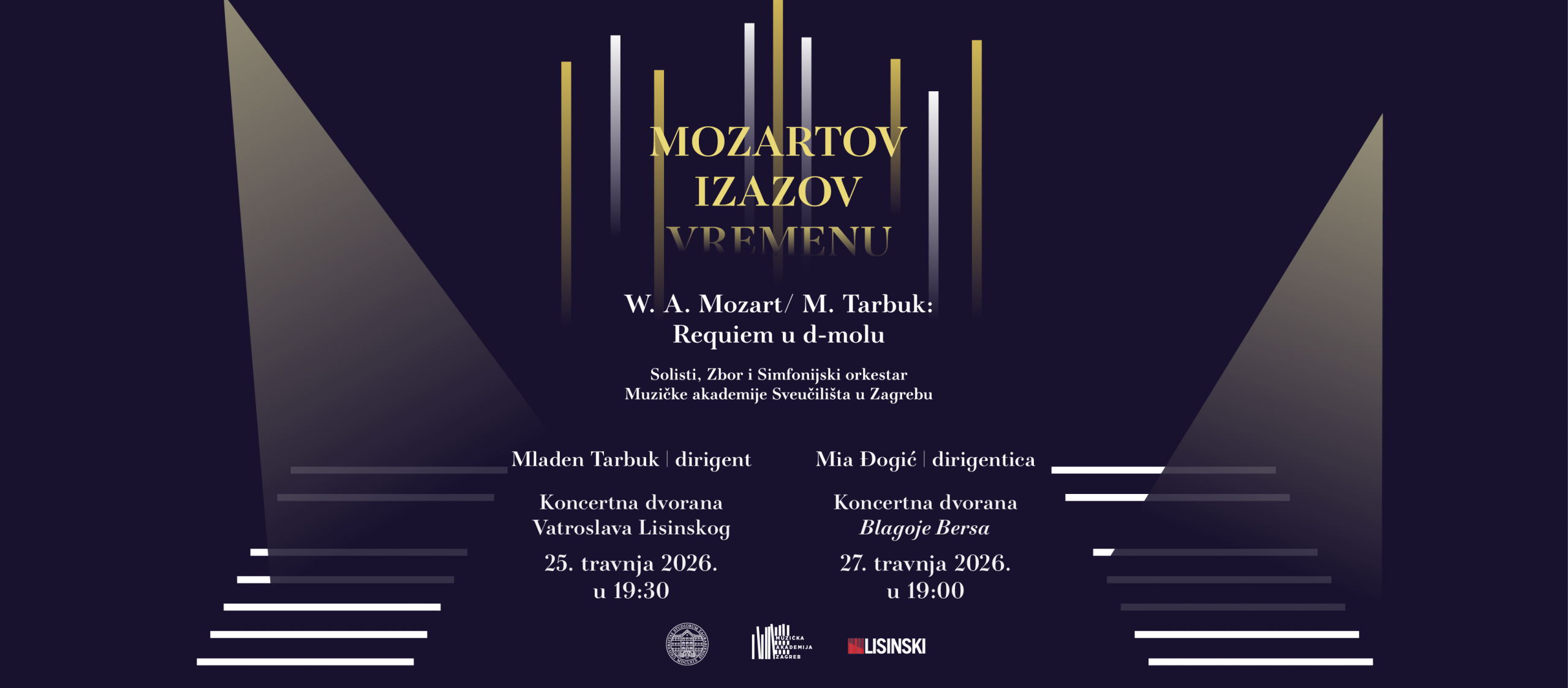 Wolfgang Amadeus Mozart / Mladen Tarbuk: Rekvijem u d-molu SOLISTI, ZBOR I SIMFONIJSKI ORKESTAR MUZIČKE AKADEMIJE SVEUČILIŠTA U ZAGREBU MIA ĐOGIĆ, dirigentica MIA VIDAKOVIĆ,... Više...